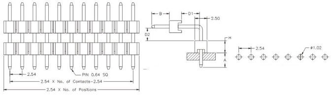 2.54mmPitch Pin header Connector, with one to four rows of 2 to 80 pins.Available in custom length and pitch.Pins can be configured as straight pin, right angle pin andSMT pin.Packing options include bag, tube, and reel packing, Plating options:gold flash, tin plating. These connectors are widely used in electronics, electrical appliances, PCB applications, serving as circuit blocker or to isolated circuit.It can function as a bridge, accomplishing he task of current or signal transmission.Typically used as the mate to female header or with electronic wire terminals.Can be independently used for plate and plate connection.