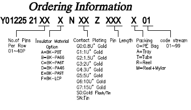 2.54 Pin Header - Single Row Dual plastic H:2.5 Pin header - SMT Type Male Header Connector - P/N.Y02100-21M-SMT-XXP
